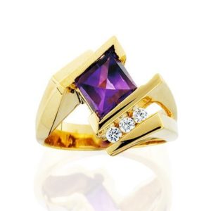 14kt yellow gold Amethyst ring with .12tw of diamonds.