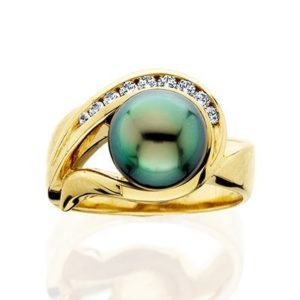 14kt yellow gold South Sea Pearl ring with .15tw of diamonds.