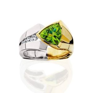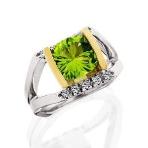 14kt white & yellow gold Peridot ring with .15tw of diamonds.