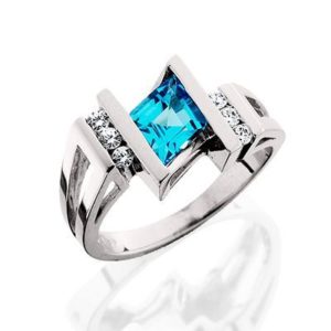 14kt white Gold Blue Topaz Ring with .12tw of diamonds.