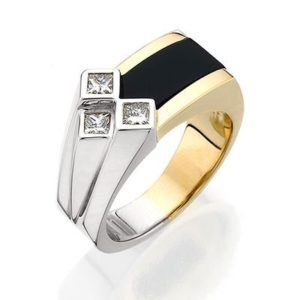 14kt two-tone onyx & princess cut diamond gents ring .45tw