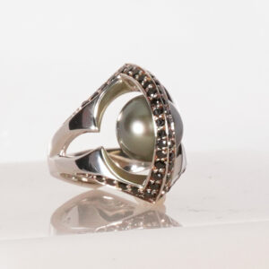 Silver South Sea Pearl Ring with black diamonds = .62tw