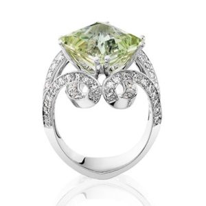 Princess Cut Chartreuse Tourmaline Ring 8.45cts with 1.50tw of diamonds in 14kt white gold.