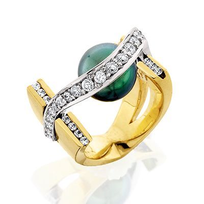 14kt yellow & white gold South Sea Pearl ring with .80tw of diamonds.