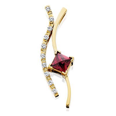 14kt yellow gold Rhodolite Garnet Pendant with .15tw of diamonds.