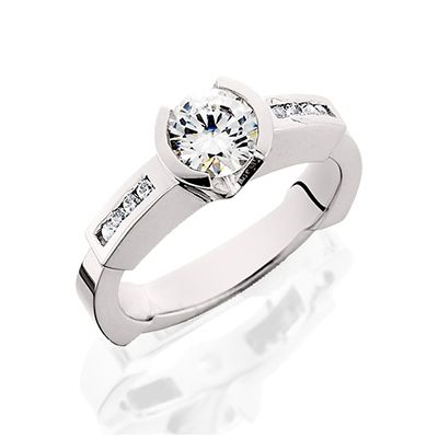 14kt white gold half bezel set with .14tw of diamonds.