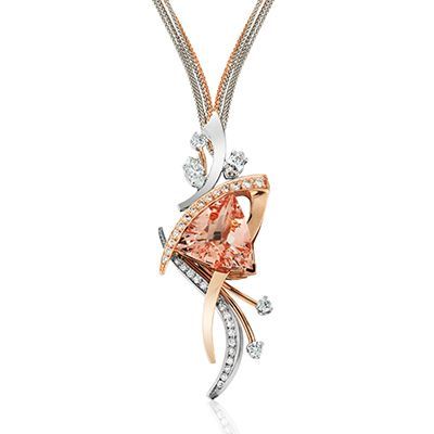 14kt white & rose gold Morganite Pendant with .65tw of diamonds.
